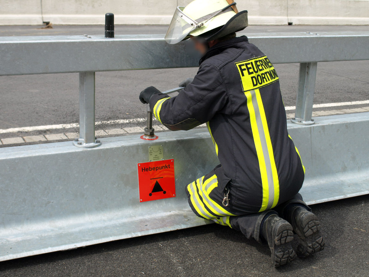 Bei der zu öffnenden Mittelstreifenüberfahrt ist die Einweisung der Feuerwehr und der Rettungskräfte genau so wichtig wie die Montage. Nur so ist gewährleistet, dass der Öffnungsvorgang bei einem Unfall reibungslos funktioniert.