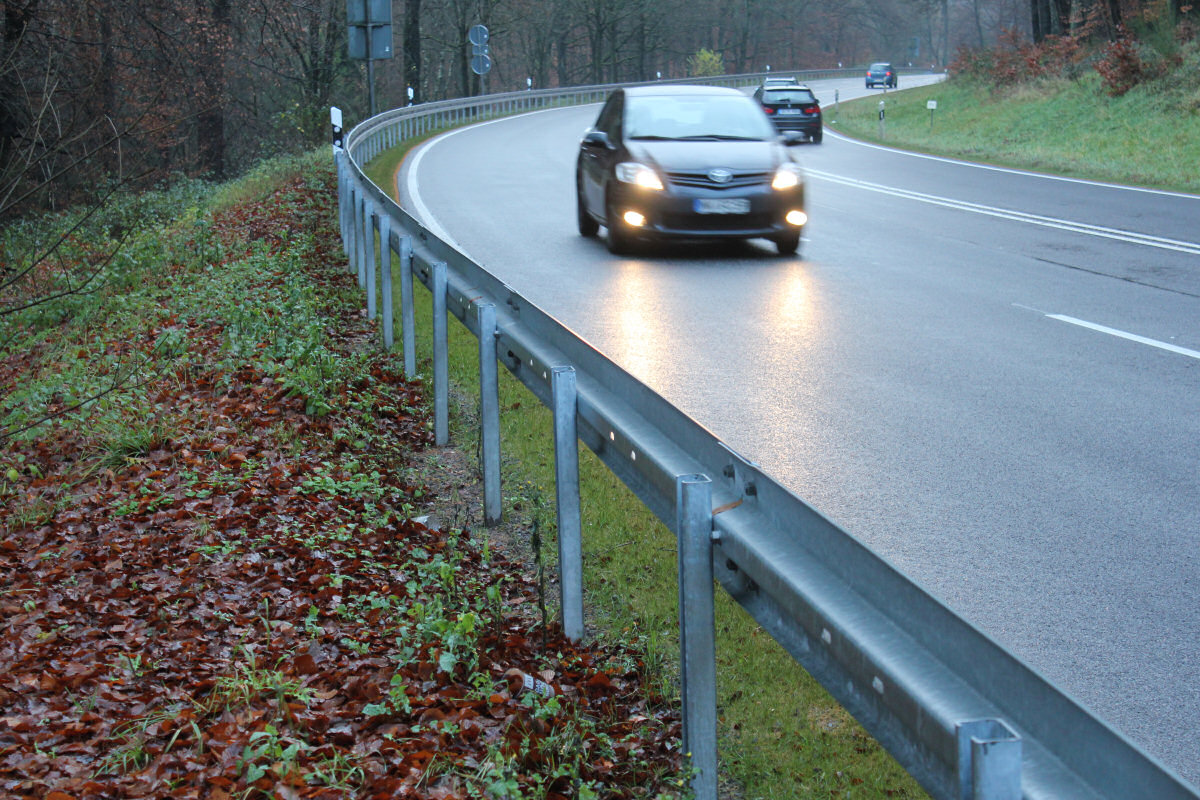 Schutzplanke mit 4 bzw. 2 Metern Pfostenabstand) reicht an